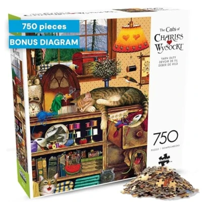 RELAXING PUZZLING EXPERIENCE: Enjoy a rewarding, screen-free puzzle session that’s engaging without feeling rushed. This 750 piece puzzle offers a satisfying challenge that’s great for solo puzzling, low-key date nights, or unwinding at the table after a long day. PLAYFUL CAT DETAILS: Curious cats weave their way through the scene, adding lighthearted moments to discover as you piece the image together. These subtle touches bring extra personality without distracting from the overall artwork. CHARLES WYSOCKI AMERICANA ART: Features Wysocki’s signature folk-art style, filled with cozy interiors, warm colors, and thoughtful details that make each section enjoyable to assemble and explore. QUALITY YOU CAN FEEL: Made from premium puzzle board crafted with recycled materials, each piece fits snugly and holds its shape for a smooth, dependable build you can feel with every connection. POSTER INCLUDED & MADE IN THE USA: Finished size is 24 x 18 inches and includes a large reference poster to guide assembly. Proudly manufactured in the USA and designed for ages 14+ and all skill levels., Manufacturer: Buffalo Games