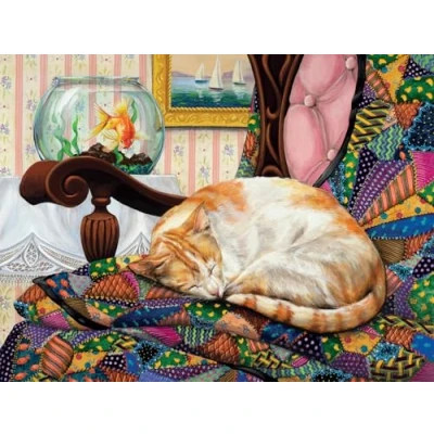 Buffalo Games Joelle McIntyre Sleeping Quilt Cat 750 Piece Jigsaw Puzzle for Adults Challenging Perfect Game Nights Finished Size is 24 x 18