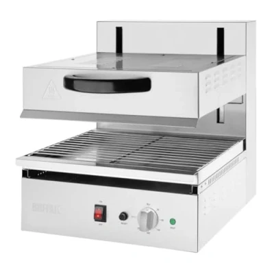 500(H) x 450(W) x 509(D)mm. Stainless Steel. Silver. Strong, easy-clean stainless steel housing. Adjustable dial thermostat up to 300°C. Adjustable grilling height 43mm-195mm. Smooth rise and fall operation ensures the perfect results.