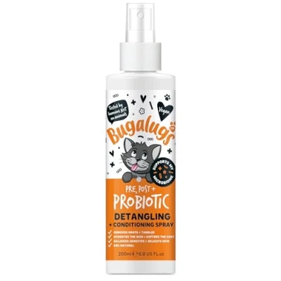 Bugalugs cat Probiotic Detangler spray leave In conditioner for de matting. No tangles. Professional grooming formula contains Wheat protein. Pet detangling knot removal (200ml)