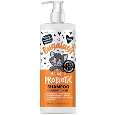 Bugalugs cat shampoo for Itchy skin with Prebiotics & Probiotics cats kitten and indoor sensitive supports your pets Microbiome (Shampoo 500ml)