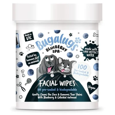 Bugalugs Dog Face Wipes for Dogs, Blueberry Spa Facial tear stain remover dogs eyes Brightens & Refreshes pets faces (100 Wipes)