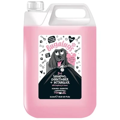 BUGALUGS dog Shampoo 3 in 1 shampoo, Conditioner & Detangler Raspberry Lemon perfume grooming products for smelly dogs, best coat puppy pet professional accessories
