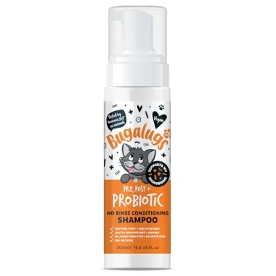 Bugalugs Pre, Post & Probiotic No Rinse Cat shampoo Conditioner with Baby Fresh Fragrance. Brush through, for cats and kittens. Foam action grooming dry kitten