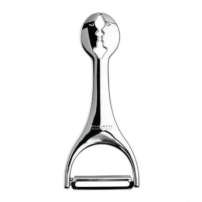 The Bugatti Kiss Peeler Chrome has a unique design of the silhouette of two people kissing on the handle with a chrome finish for an elegant look. It makes the perfect gift for a loved one, and the ideal kitchen companion for anyone. With a sharp blade, it can peel a multitude of vegetables quickly and easily, including carrots, potatoes, cucumbers and more.Made from Zamak.Hand wash only.