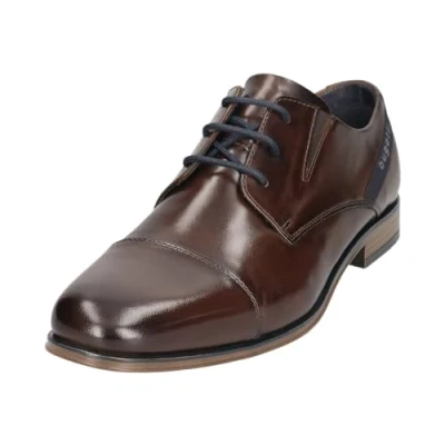 bugatti Men's Derby mit Textileinsatz und Querkappe Lace up, Dark Brown, 9 UK