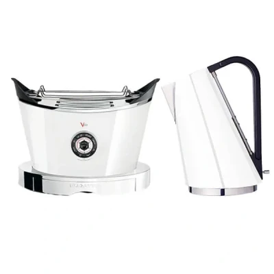 The Bugatti White Yvera Easy Kettle and Volo Toaster Set features an elegant and slender design, perfect for modern and contemporary kitchens.The stylish kettle is durable and easy to use, a simple touch opens the lid for filling with a handy window for checking the water level.Made from stainless steel, the Yvera Easy white kettle includes a removable anti-limescale filter for fresh tasting drinks.The kettle sits on and is powered by a 360°c base which means the kettle can be accessed and rotated to any position.Capacity: 1.7 litres. Size: 32(H) x 18(W) x 22.5(L)cm. Weight: 1.4kg.The Bugatti Volo White Toaster combines technology with design and matches perfectly with a modern kitchen. The 'V' shape design of the Bugatti Volo toaster is both dynamic and elegant and matches beautifully with other items in this collection.The white Volo toaster has settings for defrosting frozen bread, reheating toast that has been left to go cold, a bagel setting for only toasting on one side and browning up to 6 levels.The white Volo toaster will automatically lift the toast slices for ease of use. Complete with a removable crumb tray so that the toaster can be cleaned and used easily.Made from stainless steel, the Bugatti Volo toaster is available in various colours to express your style and personality of your home.930 watts. Size: 30(H) x 20(W) x 32(L)cm. Weight 1.2kg.
