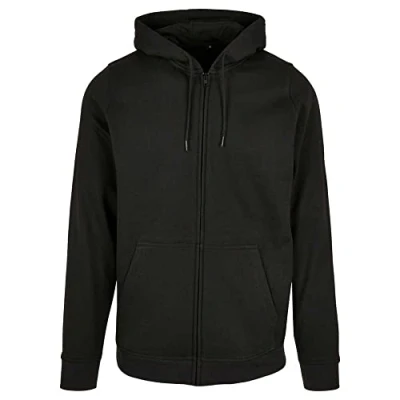 Build Your Brand Men's Basic Zip Hoody Hooded Sweatshirt, Black, 5XL