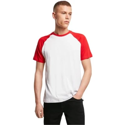 Build Your Brand Men's By007 Raglan Contrast Tee T Shirt, Wht/Red, 5XL
