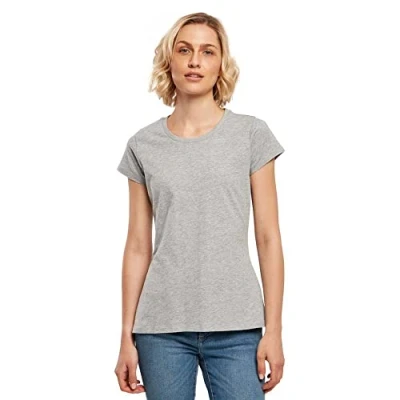 Build Your Brand Women's Ladies Basic tee T Shirt, Heather Grey, XS