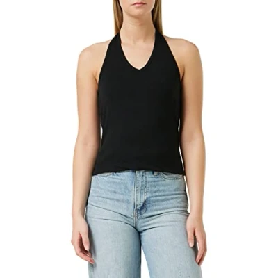 Build Your Brand Women's Ladies Neckholder Shirt T, Black, S