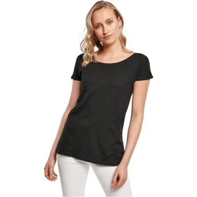 Build Your Brand Women's Wideneck T Shirt, Black, S