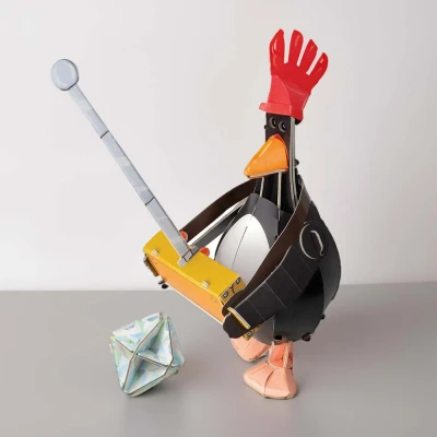 Bring the infamous criminal mastermind to life with Build Your Own's 'Feathers McGraw' kit! Featuring clever mechanics for walking legs and blinking eye action, Feathers' expressive body language speaks volumes. This villainous penguin comes complete with his chaos-causing remote-control panel, red rubber glove hat, and a large diamond, with moveable arms for added realism.