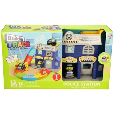 COMPLETE PLAYSET: Builder Track Police Station Launch & Raceway includes 13 pieces featuring a police station building, launch track, raceway, and 1 toy car for exciting imaginative play INTERACTIVE FEATURES: Launch and raceway system allows children to send cars racing down the track, with multiple play areas including dispatch centre, parking zones, and station details DEVELOPMENTAL BENEFITS: Designed for children 18 months and above, this toy encourages creative thinking, hand-eye coordination, and role-play scenarios whilst developing fine motor skills EXPANDABLE TRACK SYSTEM: Assembly function track offers more ways to play, allowing children to build and customise their raceway layout for endless entertainment possibilities DIMENSIONS: Playset measures approximately 44.5cm in length, 35cm in width, and 24.5cm in height, providing a substantial play area perfect for little hands, Manufacturer: Padgett Bros (A to Z)