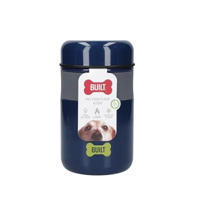 Harts of SturThis Built stainless steel pet food holder is finished in a blue colour with a grey silicone band for a firm grip and a silicone seal.The seal provides a leak-proof solution so that both dry and wet foods can be transported safely. The contents can stay cool or alternatively warm for a number of hours when taking on the go.The double walled container has a capacity of 473ml and is BPA and PVC free for the perfect food storage solution.