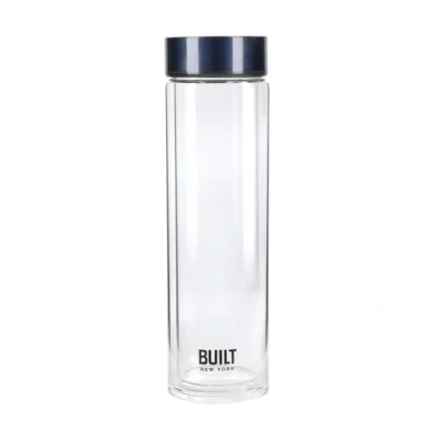 Built Tiempo Insulated Glass Water Bottle, BPA Free Borosilicate / Stainless Steel Flask, Midnight Blue, 450ml