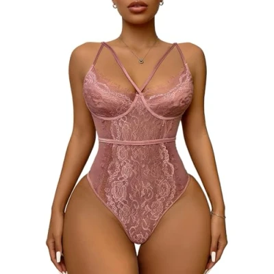 Buitifo Womens Sexy Bodysuit Lingerie One Piece Babydoll V Neck Teddy Snap Crotch (Pink,S)