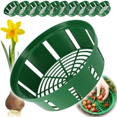 ➡️ Plastic baskets (covers) are an ideal solution for planting flower bulbs, especially tulips, narcissus, crocuses, snowdrops, etc. ➡️ They protect the bulbs against garden pests such as mice, mole voles and at the same time enable easy arrangement of plantings. ➡️ Thanks to the use of baskets, it is also easier to "find" the bulbs in the soil that are dug out for the winter. ➡️ The baskets are made of weather-resistant polypropylene, so they can be used for many years. ➡️ Product advantages: makes planting and digging bulbs easier allows for any arrangement of plantings protects bulbs against rodents and pests ➡️ Parameters: diameter - 20 cm - 23cm - 26cm height - 6.5 cm material - plastic green color