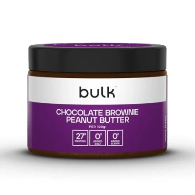 High-quality flavoured peanut butter in chocolate brownie flavour Powered by 27 g protein per 100 g Manufactured exclusively for Bulk and made with premium roasted peanuts Perfect for anyone looking to add more protein into their diet Ideal between meals or to snack on throughout the day