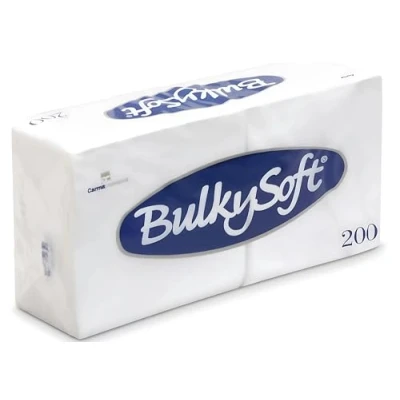 BulkySoft White Paper Napkins 2 Ply Disposable Serviettes 33x33cm Soft Tissue for Parties, Events, Catering 200 Pack