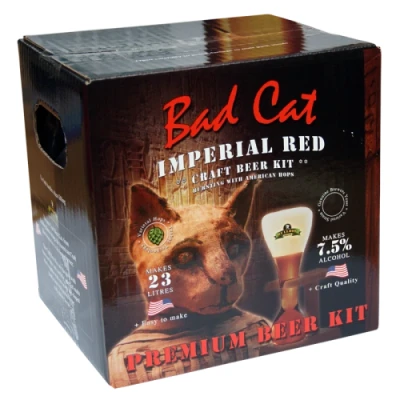 Makes 23l Of Premium Craft Qualitiy Beer - Bursting With American Hops Double Strength Craft Beer Achieves Approx 7.5% ABV Contains 2 Additional Hop Sachets For A Powerful Dose Of Amarillo And Willamette Ready To Drink In Approx 3 Weeks Combined With Special Craft Beer Yeast, This Is The Recipe For A True Craft Beer, Full Of Potent Bitterness, Bursting With Aromas Of Fruit And Pine Tony's TipsGood Home wanted for Bad Cat!You've possibly heard of, or even tried "Evil Dog", the Premium Canine Craft Beer, well, not wishing to be upstaged by a Fearsome looking Ugly Dog a Good Home is also needed for this Kit, the Feline alternative, "Bad Cat", slightly higher Alcoholic strength at 7.5% abv but different in Character and style, a super American Craft Ale for those who favour Purring, Roaring and Scratching above Howling, Barking and Biting!