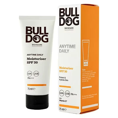 Boots54 Advantage card points. Bulldog Skincare Anytime Daily SPF 30 Face Moisturiser For Men, Men's Face Cream, UVA/UVB Sun protection, 75ml FREE Delivery on orders over 45 GBP.