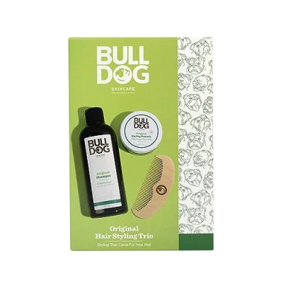 Bulldog Skincare Original Hair Styling Trio, Gift Set for Men (x1 Shampoo 300ml, x1 Pomade 75g & Pocket Comb)