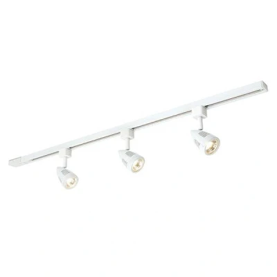 This kit comprises of 3 multidirectional GU10 spotlights and a metre of mains track in a gloss white finish. The spotlights feature distinctive decorative markings on the outside and a classic bullet shape. Also available in other colours.