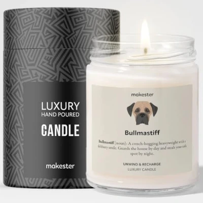 Bullmastiff Candle Over 100+ Breeds 220g Soy Wax Madagascan Vanilla & Jasmine Gift Dog Candles by Makester
