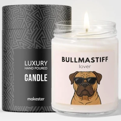 Bullmastiff Gifts Luxury Soy Wax Candle Vanilla, Jasmine, Sugared Almond Dogs in Shades Makester