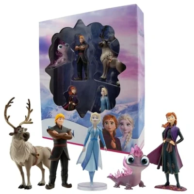 Bullyland 13414 Toy Figures Anniversary Set Princess Elsa, Anna, Salamander Bruni, Kristoff and Sven from Walt Disney Frozen 2, Ideal as a Small Gift for Children 3 Years