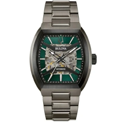 This Bulova men’s watch from the Maquina collection offers daringly avant-garde design. High quality Grey Stainless steel strap, measuring 21 cm in length and 23 mm in width, with a Deployment clasp. Case measurement: 40 X 48 mm,case thickness: 13 mm, case colour: Grey and dial colour: Green Water resistant: 5 bars-Weight: 187 g The watch is delivered in an original gift box and has a warranty of 2 years