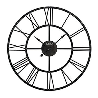 Oversized metal gallery clock Large classic roman numerals Aged Iron finish Operates on one (1) aa battery (not included) One (1) Year Limited Manufacturers Warranty