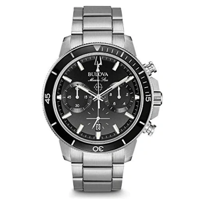 This Bulova Marine Star Chronograph Watch for Men is the perfect timepiece to wear or to gift. It's Silver 45 mm Round case combined with the comfortable Silver Stainless steel will ensure you enjoy this stunning timepiece without any compromise. Operated by a high quality Quartz movement and water resistant to 20 bars, your watch will keep ticking. This watch has a black glass insert on ratcheted rotating bezel, it’s the best present for family and friends -The watch has a calendar function: Date, six-hand chronograph, Luminous hand, Luminous Numerals High quality 21 cm length, 20 mm wide Silver Stainless steel strap with a Fold over clasp with double push button safety Case diameter: 45 mm, Case height: 15 mm and Case color: Silver Dial color: Black