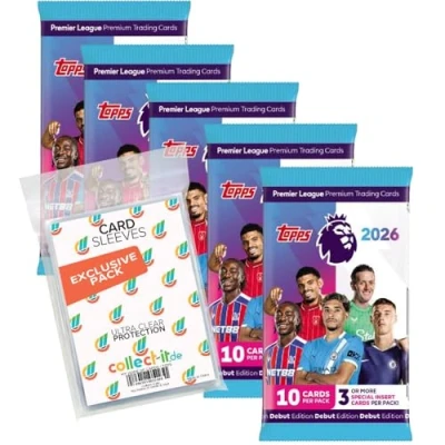 Bundle with Topps Premier League 2025/26 Trading Cards + Exclusive Collect it Cases (5 Boosters)