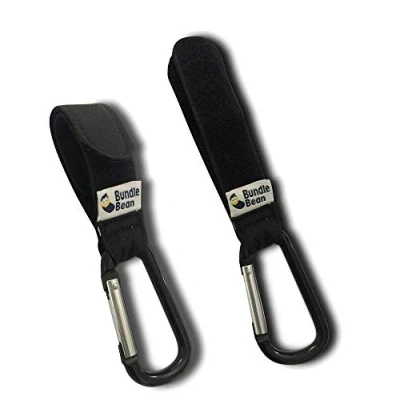 BundleBean Buggy Clips (Pair): Your Shopping, Handbag and Changing Bag to Pushchair, Stroller, Wheelchair or Walker. Universal fit, Black Hook & Loop Straps
