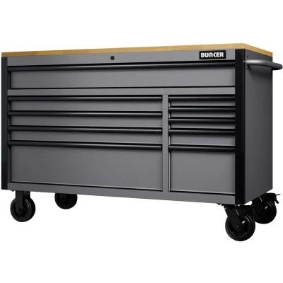 Bunker 10 Drawer Workbench Roller Tool Cabinet, 56", Light Grey