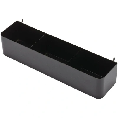 • Made from steel • Suitable for storing cans and other equipment • Highly durable black textured finish • Ideal for use with our BUNKER® back panels/pegboardsPart of the BUNKER® storage range. This hardwearing tray is designed to attach to a pegboard. Suitable for the BUNKER® modular and roller cabinet ranges, this tray creates an ideal space for storing cans and other equipment. Made from steel with a highly durable matt black textured finish.1 x BUNKER® Hanging TrayTechnical SpecificationDimensions: W 330 x H 76 x D 88mm Max. load capacity: 1kg Steel thickness: 0.9mm Weight: 0.75kgTechnical Specification:Colour: BlackDimensions: Length: 340mm x Height: 88mmWeight: 0.707KgWarranty: Lifetime