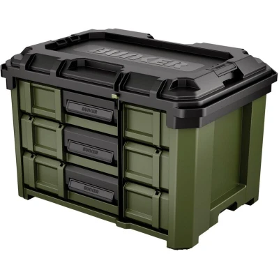 The BUNKER Load-Up Stacking Storage System offers the ultimate solution for organising, transporting, and securing your tools. Its modular design enables you to combine tool boxes, organisers and crates to create a customised stacking system that meets your specific needs. This drawer unit is constructed from high-impact resistant polypropylene. There are three 3.5"" deep drawers with dividers to enable organisation of contents. Each drawer has smooth operating sliders and auto-lock, to prevent the drawers opening on their own. For security, the system has a locking bar, which passes through to help deter theft and unauthorised access. The side rails for BUNKER Load-Up system accessories allow for further customisation and expanded storage options when used with BUNKER Load-Up Side Rail Hooks (Stock No. 31650). All BUNKER® storage comes with a 12-month warranty, extended to 10 years upon registration. Maximise your mobile tool storage and be ready for any job with the robust BUNKER