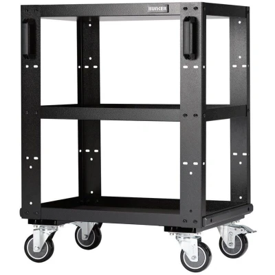 Discover the premium modular 3-tier tool trolley from BUNKER . Our tool trolleys are designed to maximise your storage space and provide easy transport of tools from one space to another. Widely used in garages and workshops, this three-tier tool trolley is equipped with three storage levels and includes a middle tier that is adjustable at three different heights for added convenience. The industrial matt textured powder coating is highly durable and protects the unit from scratches, wear, and corrosion, even in the most demanding environments. Each shelf/tier features an EVA foam lining to protect tools, and the trolley's retaining lip on all sides prevents small parts and tools from being displaced. Two heavy-duty plastic handles are located on the front of the trolley, and two of the four castor wheels are fitted with brakes to keep the trolley still when stationary. This trolley is a ready-to-assemble design, and all of the required fittings are supplied. Choose BUNKER to