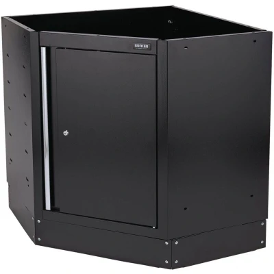 Delivered fully assembled, the cabinet measures W 865 x H 910 x D 861mm, making it a substantial addition to any workspace. It can be utilized as a standalone storage unit or paired with a corner stainless steel or hardwood worktop, seamlessly integrating into the BUNKER® modular storage system, which comprises 24 smart modular options. The design offers immense flexibility, enabling you to adapt the layout to suit your specific needs.