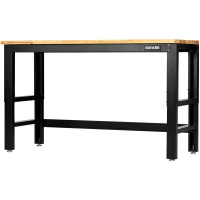 The BUNKER workbench, measuring 1550mm, is available with a choice of stainless steel or hardwood worktop, and it's the ideal companion for your garage or workshop. With an industrial-grade textured powder coating, this workbench delivers outstanding protection against scratches, wear, and corrosion. Its height-adjustable design allows you to customise the workspace to suit your needs or the specific task at hand, while adjustable feet ensure stability on uneven surfaces. All BUNKER® workbenches come with a 12-month warranty, extended to 10 years upon registration Height adjustable workspace Hardwood worktop Adjustable feet for optimal positioning Ready to assemble design Dimensions: W 1,550 x D 610mm Height adjustable: 760-1,065mm Weight: 46.2kg
