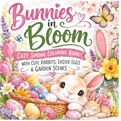 Bunnies In Bloom: A cozy spring coloring book with cute rabbits, easter eggs and garden scenes