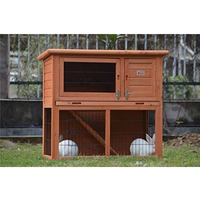 DELUXE DOUBLE DECKER: Hutch Size: 91 x 45 x 89 cms Ext Approx ( Inc Roof Overhang ) LxDxH 36" x 18" x 31" This model has a ramp to the under-run below which can be closed off at night. EASY ACCESS: With TWO full opening doors and ONE wire door and a hinged opening roof with metal stay access is a breeze. SLIDING TRAY: This model has a sliding plastic tray for easy cleaning. HEAVY DUTY WIRE. All doors have heavy duty powder coated wire which is more durable and weather resistant. UNDER-RUN: The lower compartment ( UNDER-RUN) has no floor allowing access to grass and comes with locking barrel bolts and is treated and stained in pet frien Included components: rabbit hutch