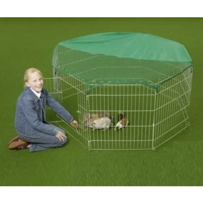 ✔【A LARGE SECURE AREA】The Bunny Business 8 Panel Play Pen offers a large secure area for you pet when assembled as shown in an octagon of 55" x 55" x 24" Height ✔【SAFETY NET】This Rabbit / Guinea Pig Playpen comes with its own safety net to help stop unwanted escapes and attack from Predators such as Cats, Dogs & Birds of prey. ✔【8 PANELS】This Bunny Business play pen is suitable for both indoor and outdoor use and consists of 8 x Panels of 60cm x 60cm making an Octagon of 55" x 55" x 24" height ✔【WEATHERPROOF】This playpen has zinc galvanised panels and ground stakes making it both lightweight and weatherproof and includes a two tone safety net to help provide protection from Sun and Rain. ✔【BUNNY BUSINESS】Celebrating 20 years in the Pet Trade Included components: 8 x metal panels, securing stakes, two tone safety net