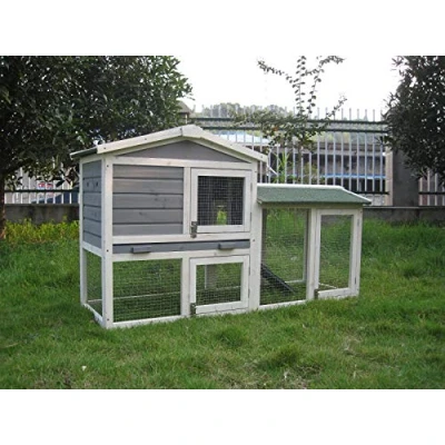 BUNNY BUSINESS The Grove Grey Double Decker Rabbit/Guinea Pig Hutch and Run EXTRA DEPTH