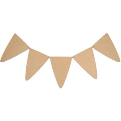 AmazonBunting shaped MDF plaque with holes for hanging / stringing together Pack of 5 wooden bunting triangles 14cm W x 20cm L Supplied plain ready to paint / decorate with acrylics poster paints stamps napkins glitters embellishments decoupage / Decopatch etc. Part of a range of wooden shapes
