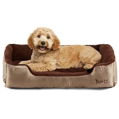 Bunty Deluxe Dog Bed Small, Medium to XXL Calming Washable Non Slip Base, Raised Walls, Fleece Lined Interior, Plush Cushioning, Insulates & Retains Heat XL, Cream