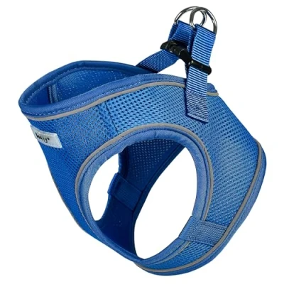 Bunty Dog Harness Small Lightweight and Durable Design, Breathable Comfy Padded Harness, Reflective Trim Puppy Easy Fit Hook Loop & Buckle Blue