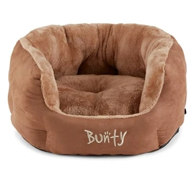 Bunty Polar Dog Bed & Cat Bed, Medium Cosy Fluffy Fleece Calming High Wall Snuggle Anti Anxiety Washable Cushion for Puppy, Small to Large Pets Brown